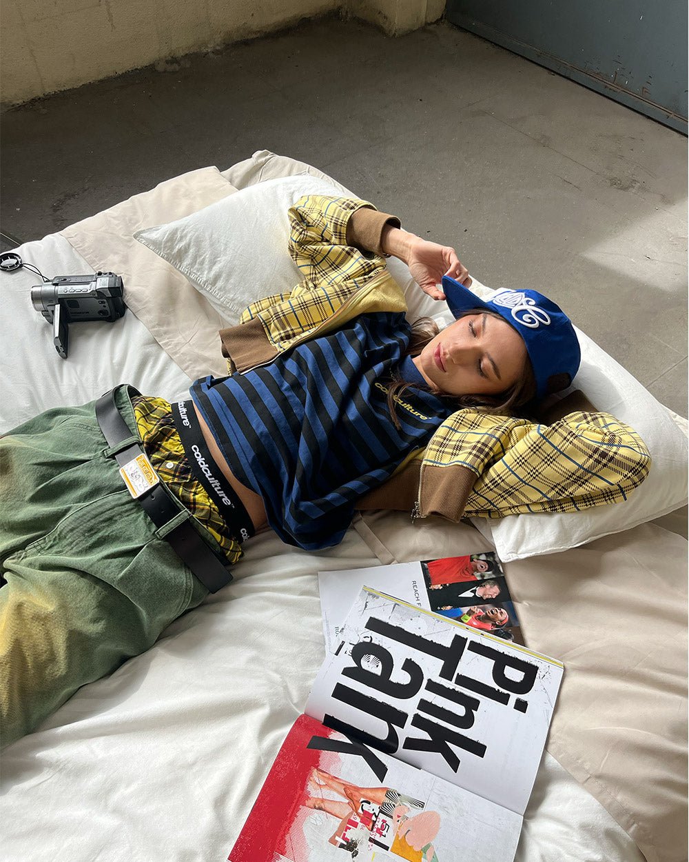 Yellow color with plaid pattern.