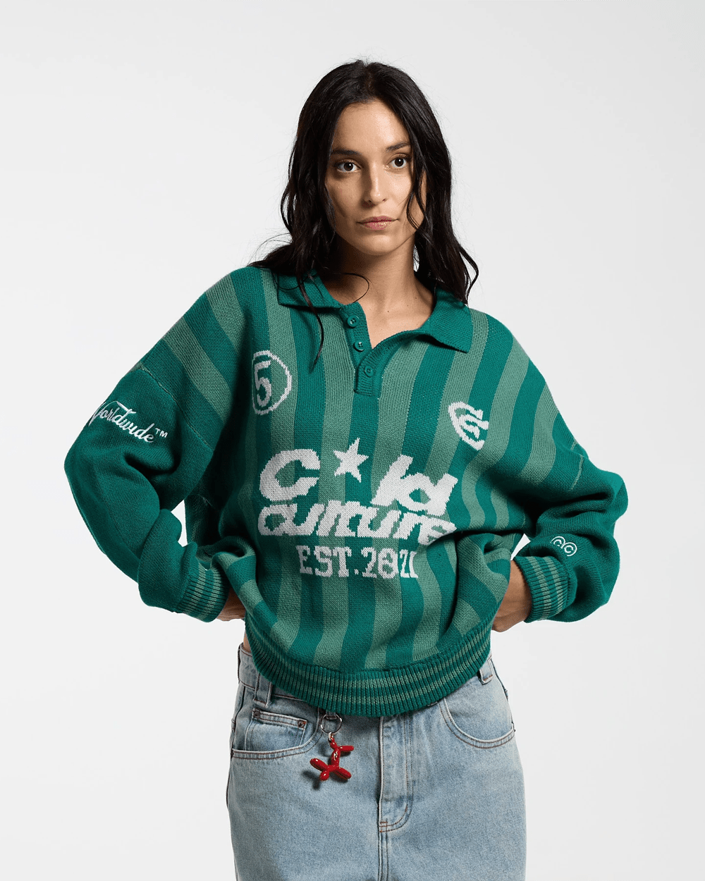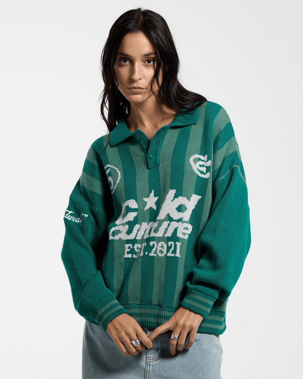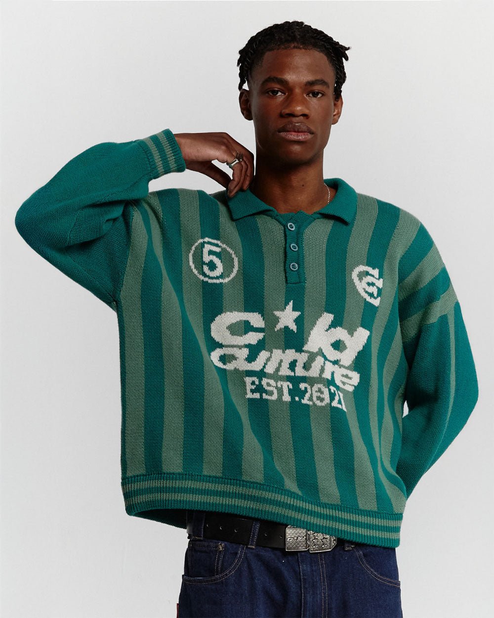 STRUCTURE COLLAR KNIT SWEATSHIRT KNIT MOSS GREEN