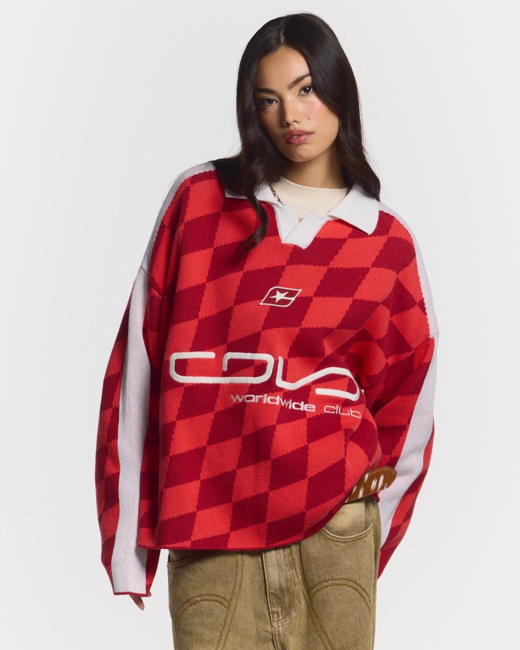 Boxy fit polo knit.