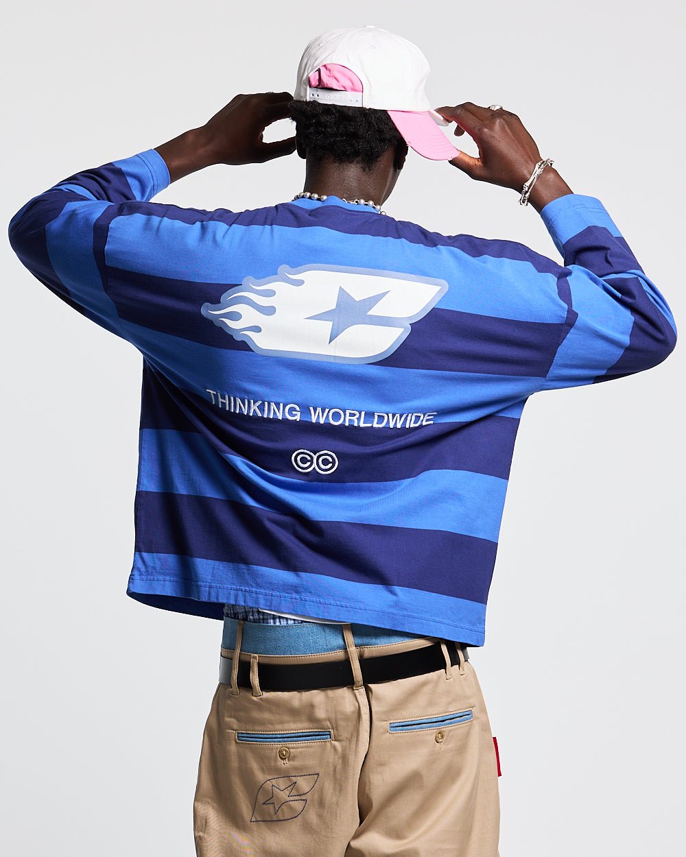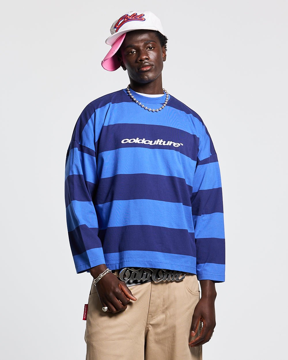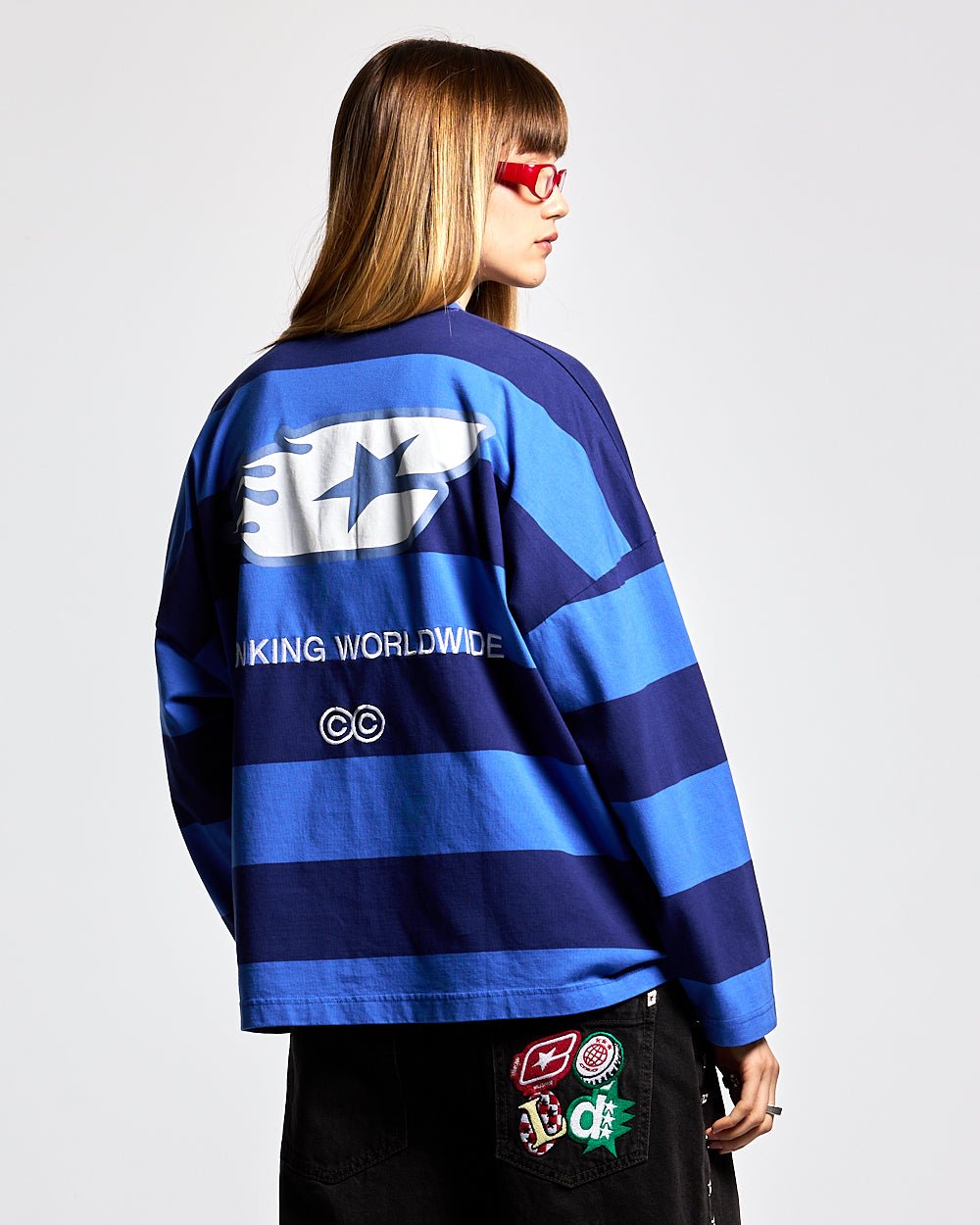 BURNIN STRIPES MANGA LARGA NEGRO Y AZUL