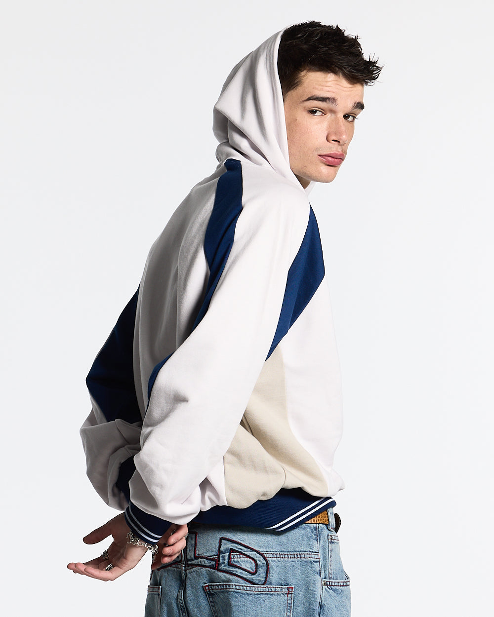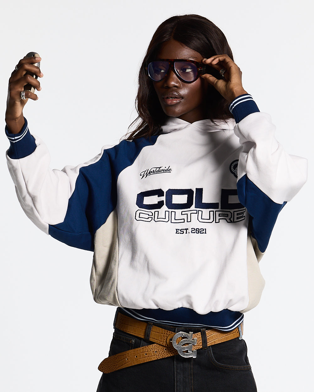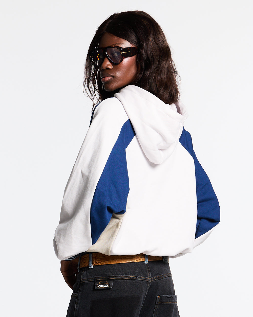 SUDADERA VAQUERA UNIVERSITARIA CON CAPUCHA BLANCA/AZUL