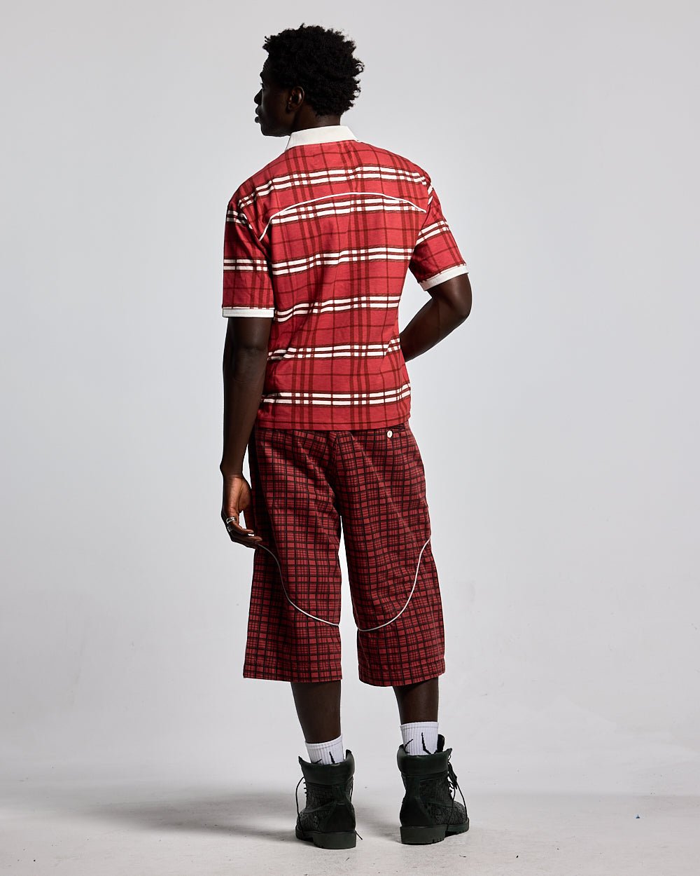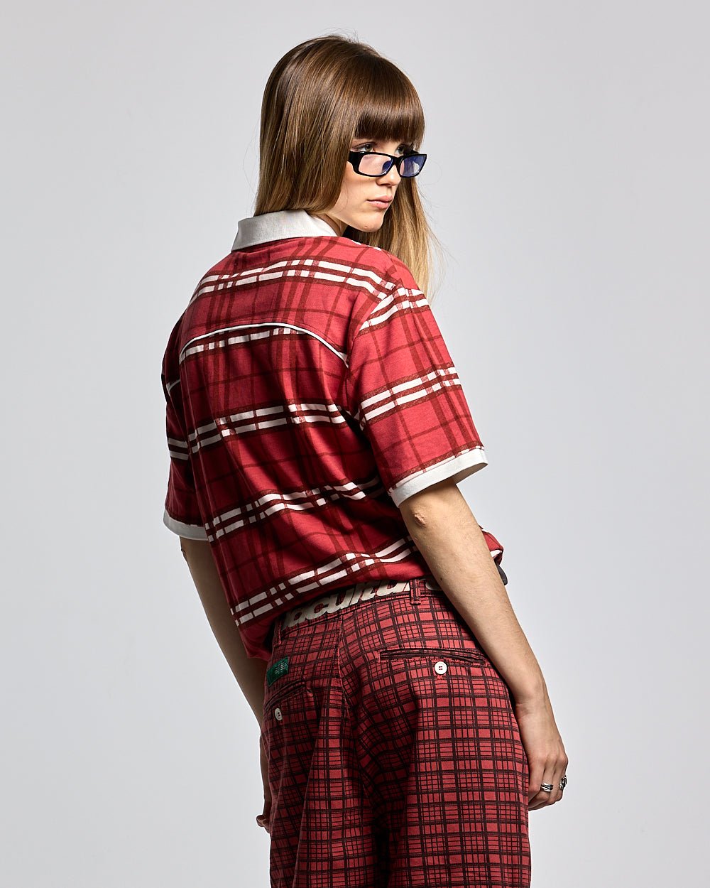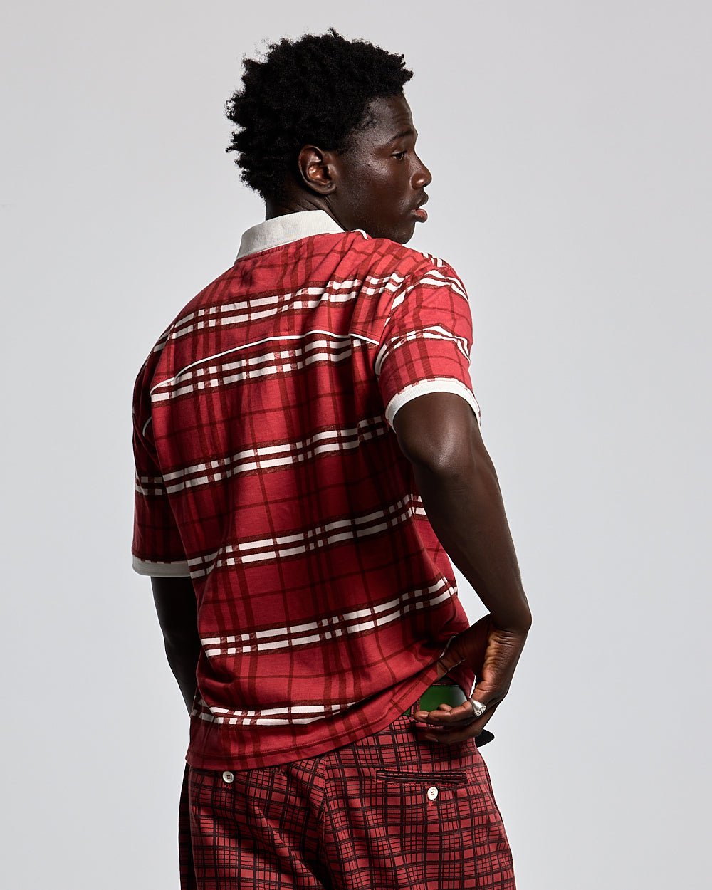CAMISETA POLO A CUADROS CARMESÍ