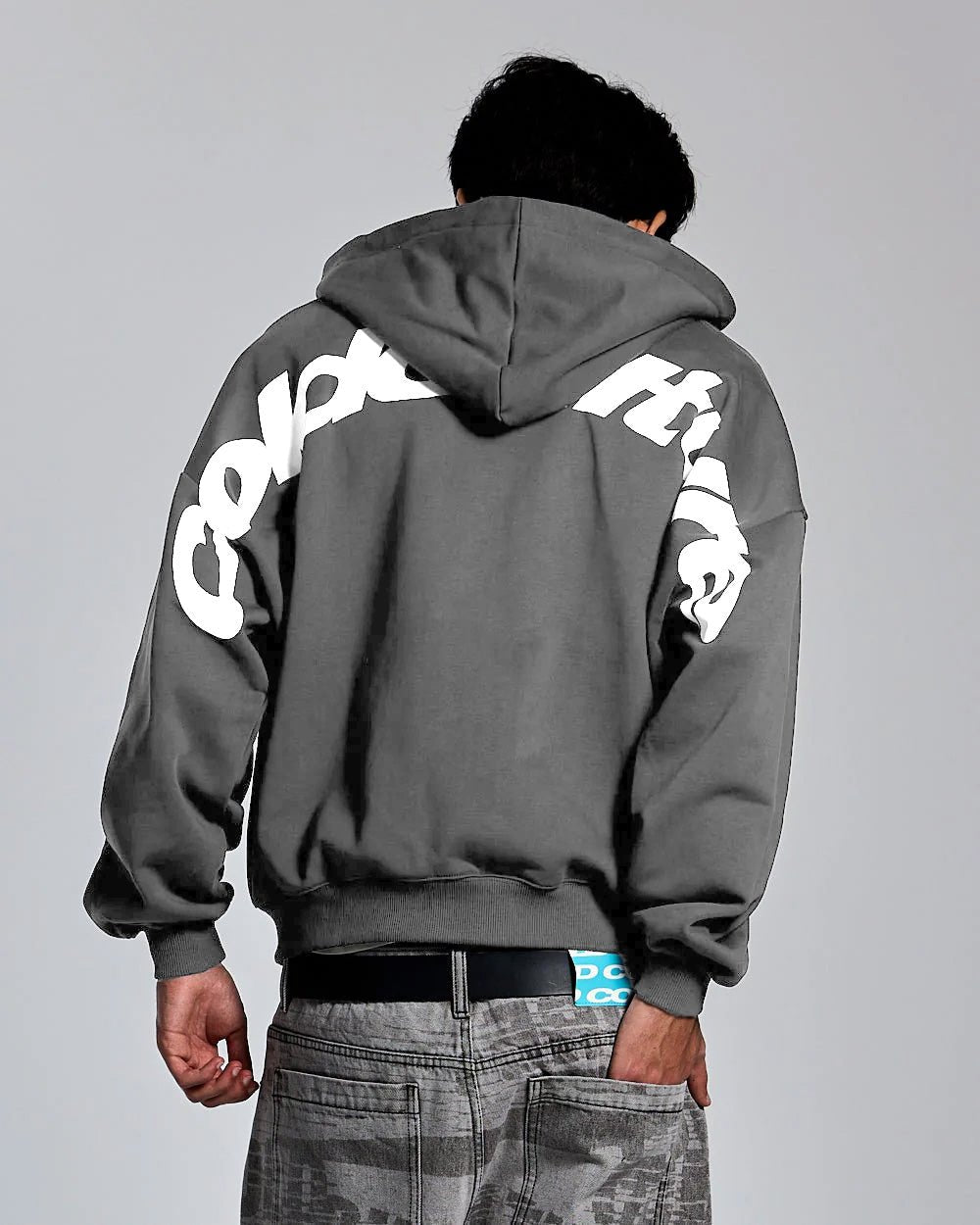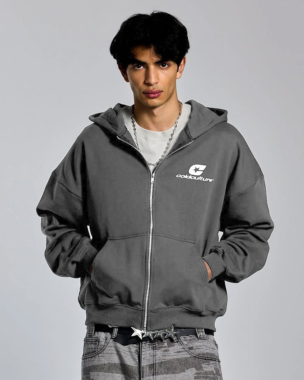 SUDADERA CON CAPUCHA Y CREMALLERA CURVA INDIA INK