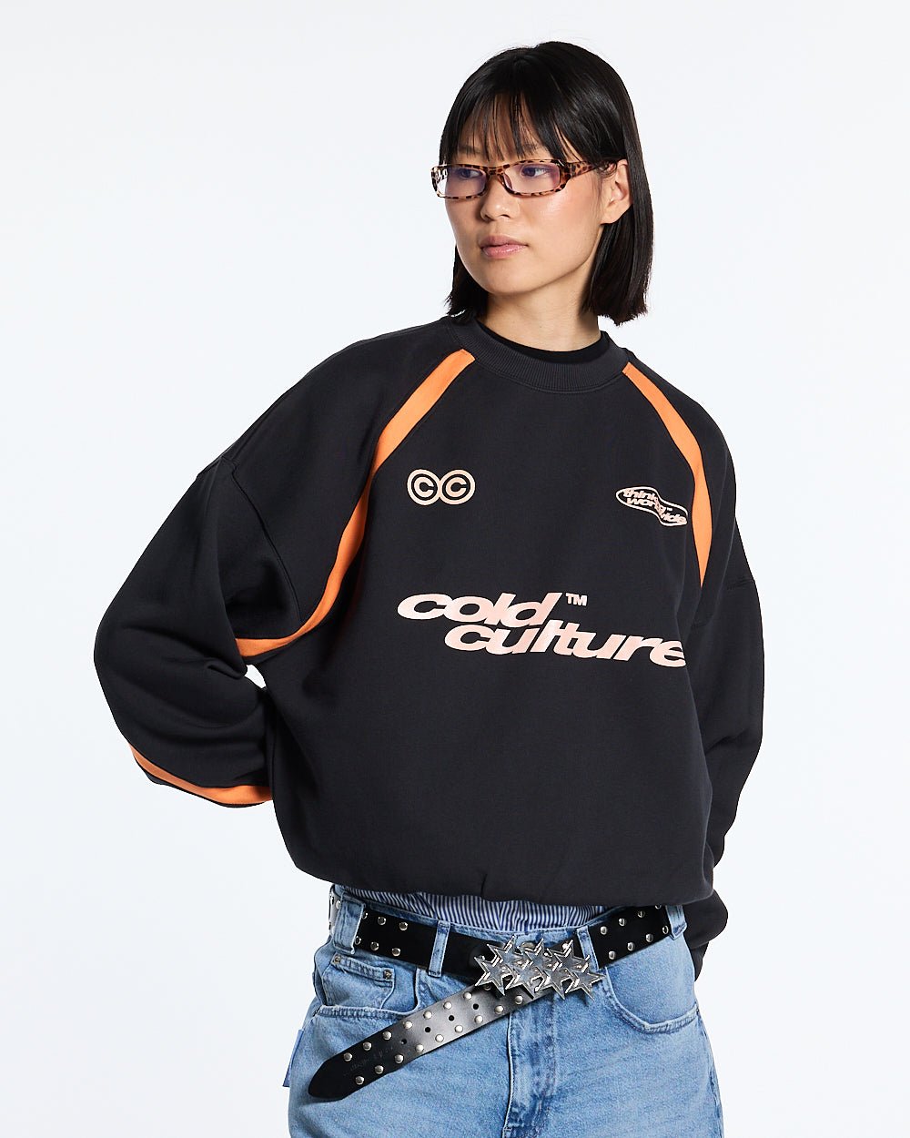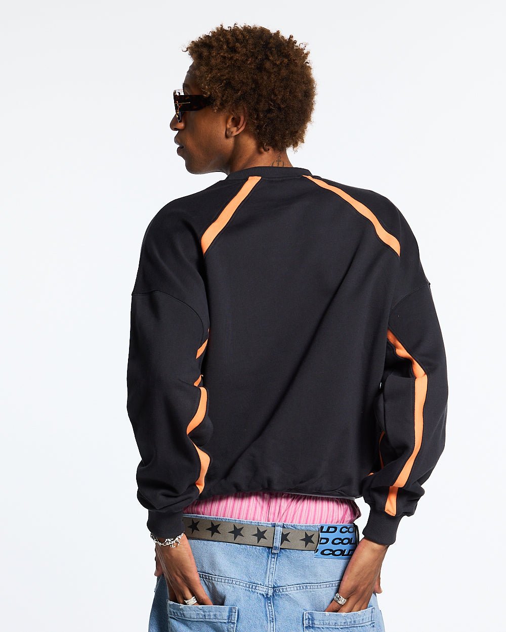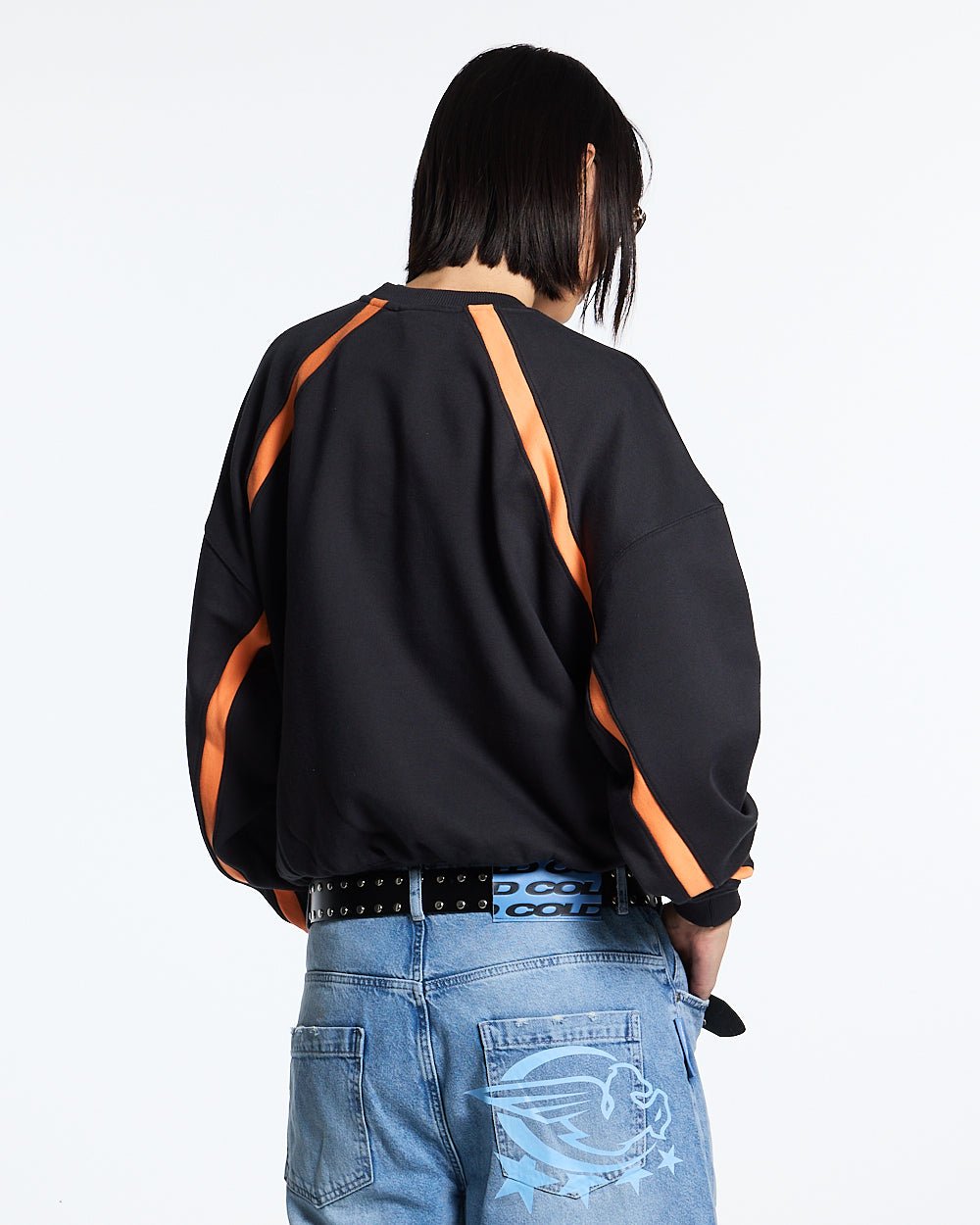 Camisa negra de manga larga curva Distress