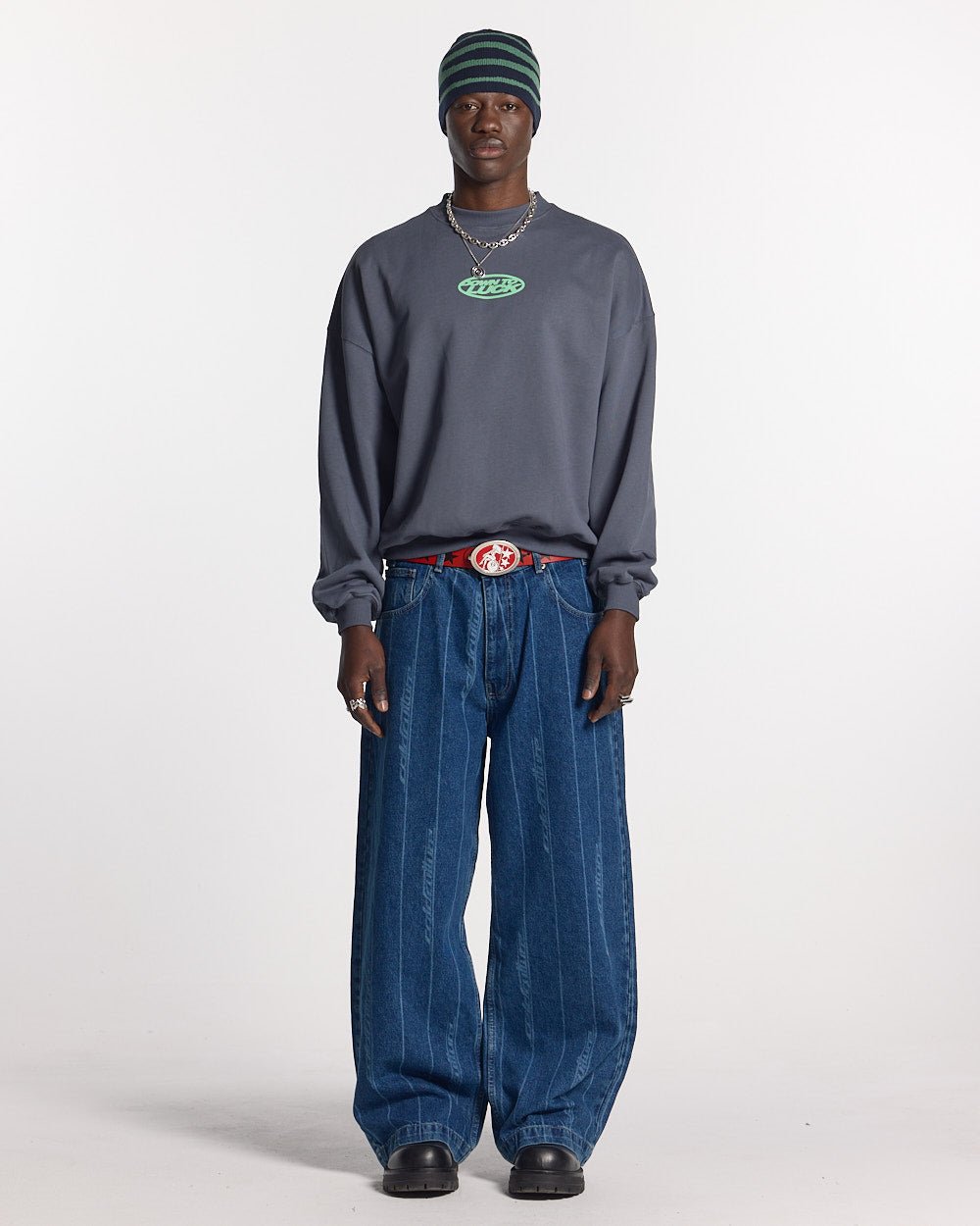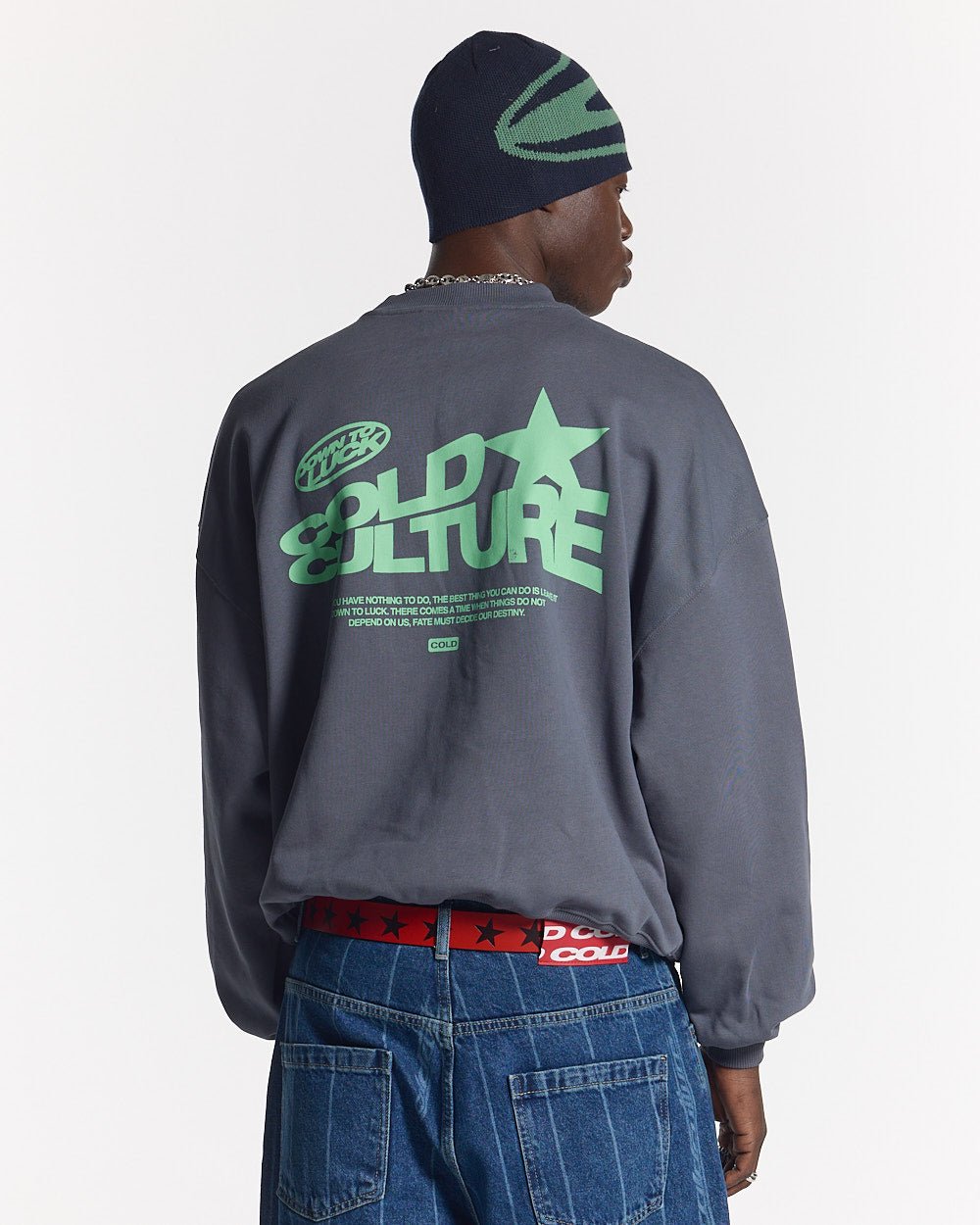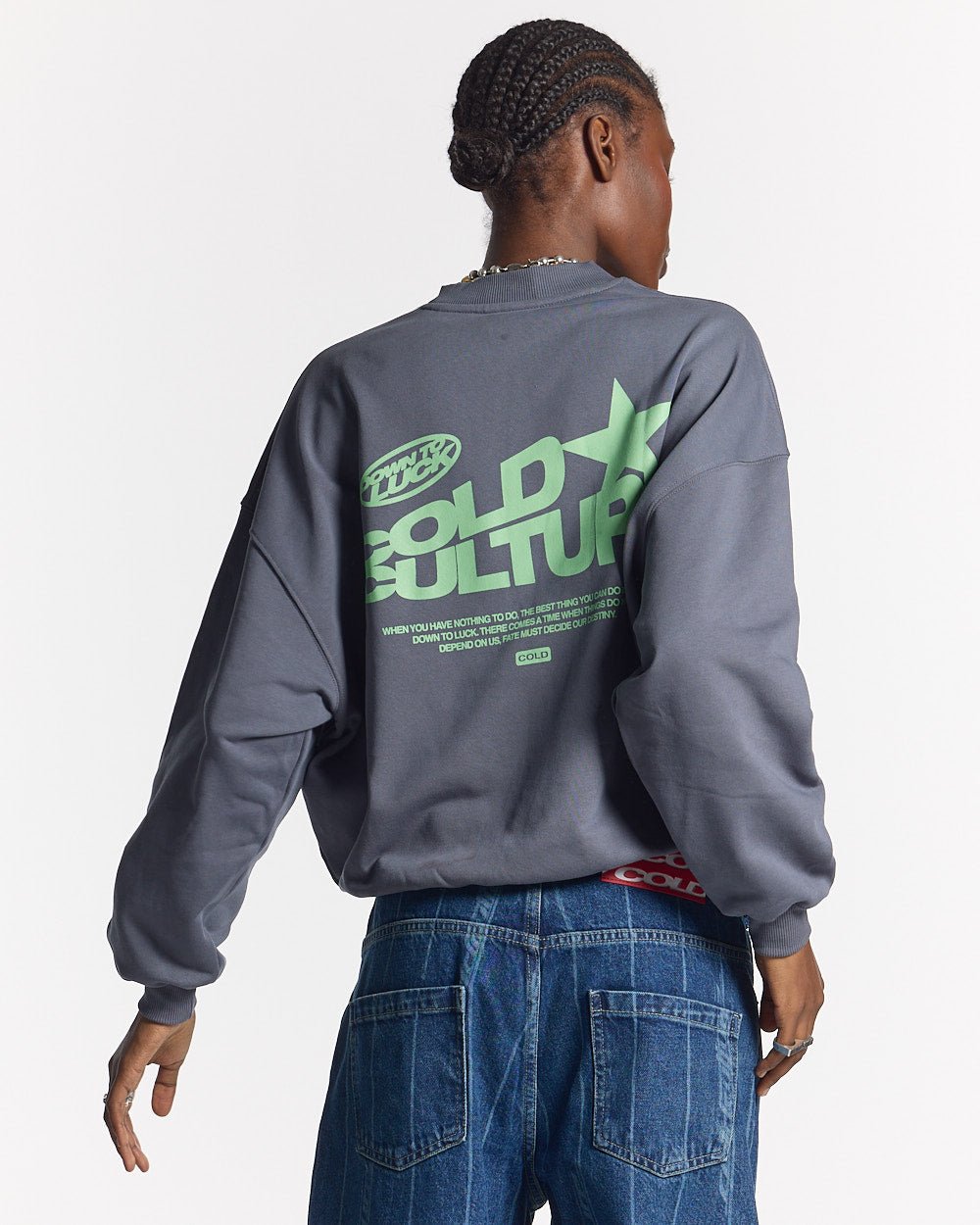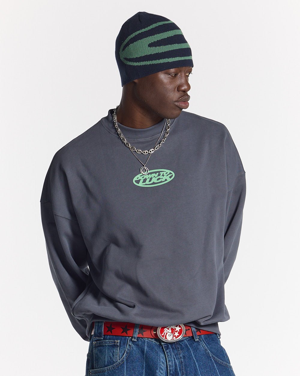 SUDADERA DE CUELLO REDONDO DOWN TO LUCK AZUL OSCURO