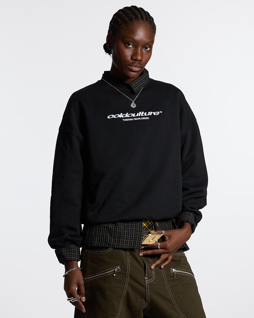SUDADERA ESENCIAL DE CUELLO REDONDO NEGRA