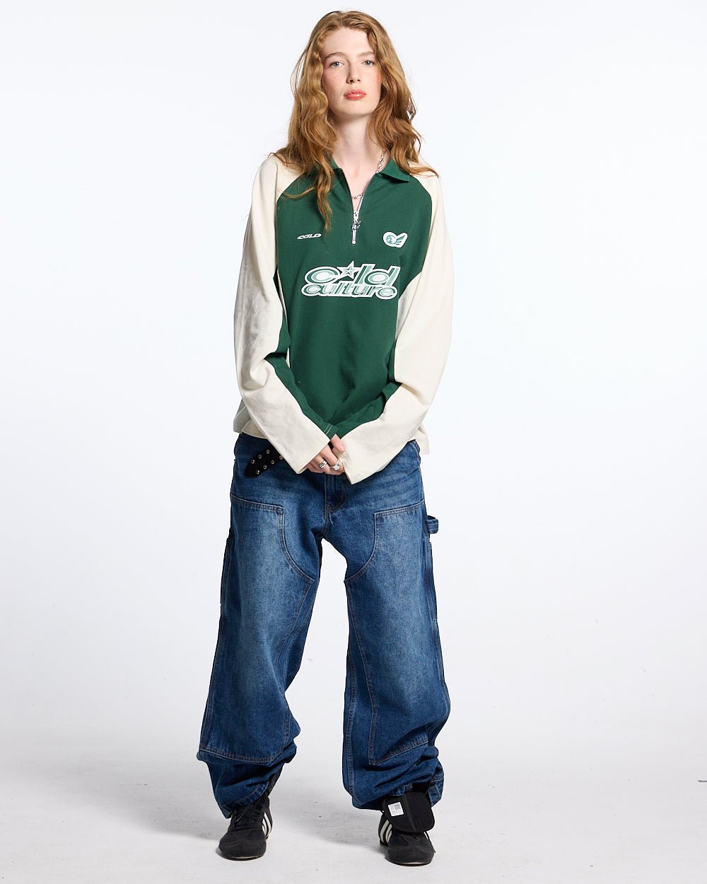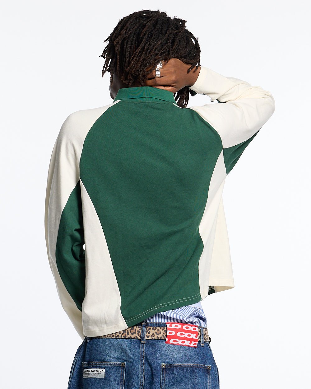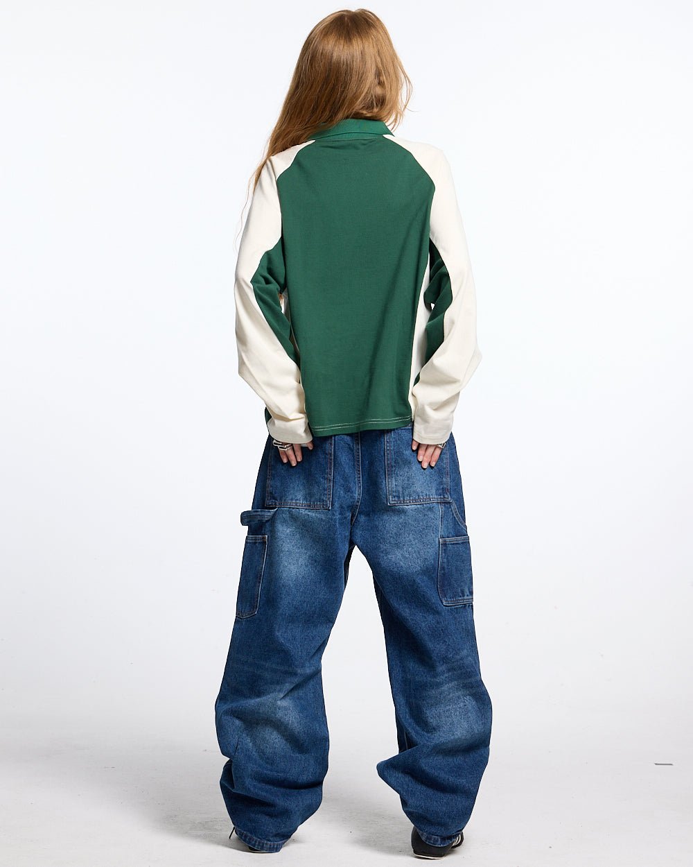 Camisa polo de manga larga de corte cuadrado.