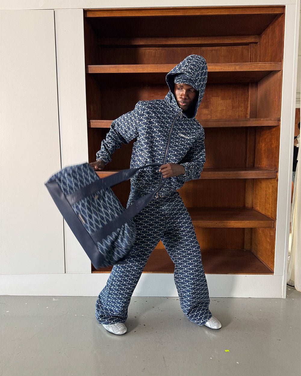 Color azul con monograma jacquard .