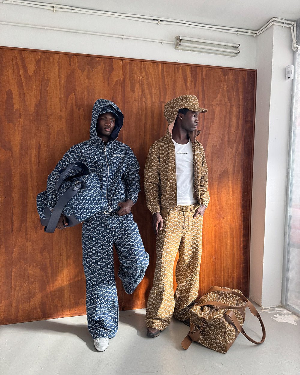 PANTALONES DEPORTIVOS TRIBALES MARRÓN Y AZUL