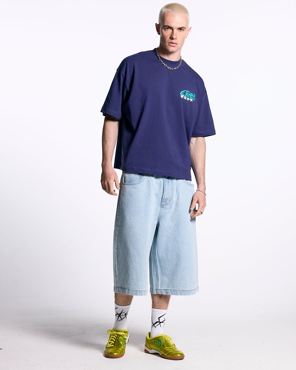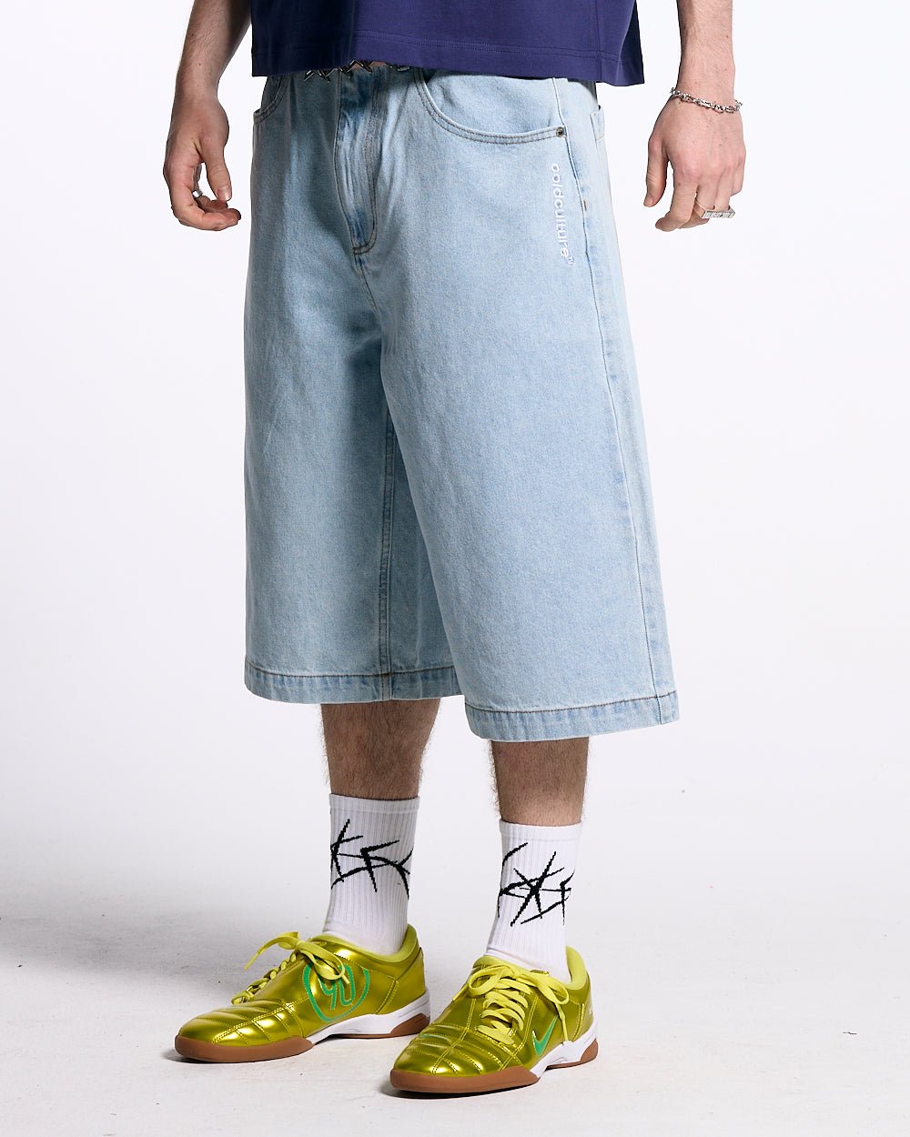 PANTALONES CORTOS ESCARCHADOS DE DENIM AZUL CLARO