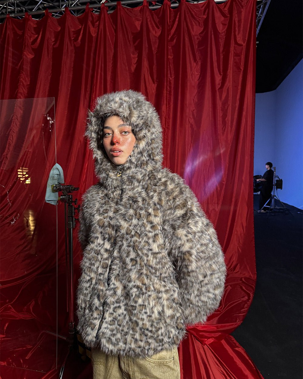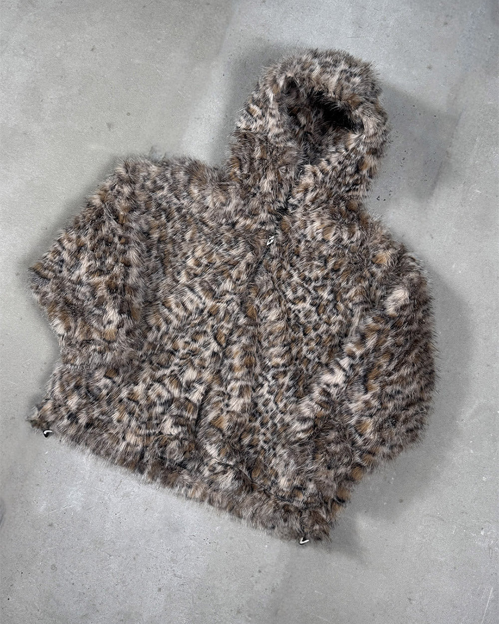 SUDADERA CON CAPUCHA DE PIEL LEOPARDO MARRÓN