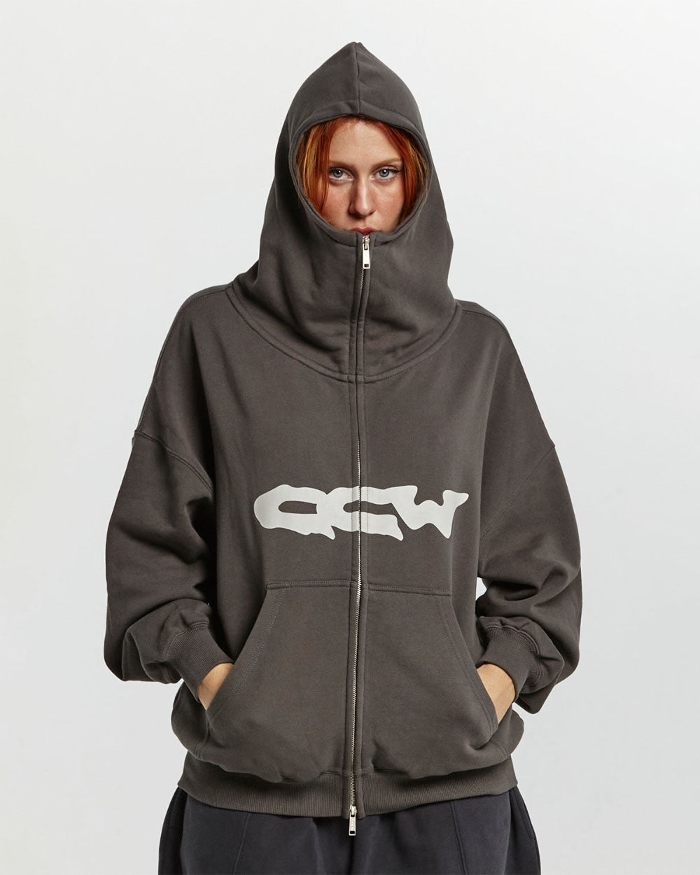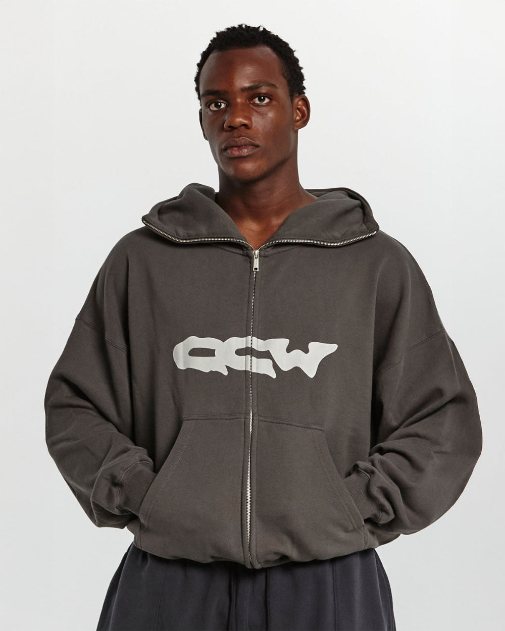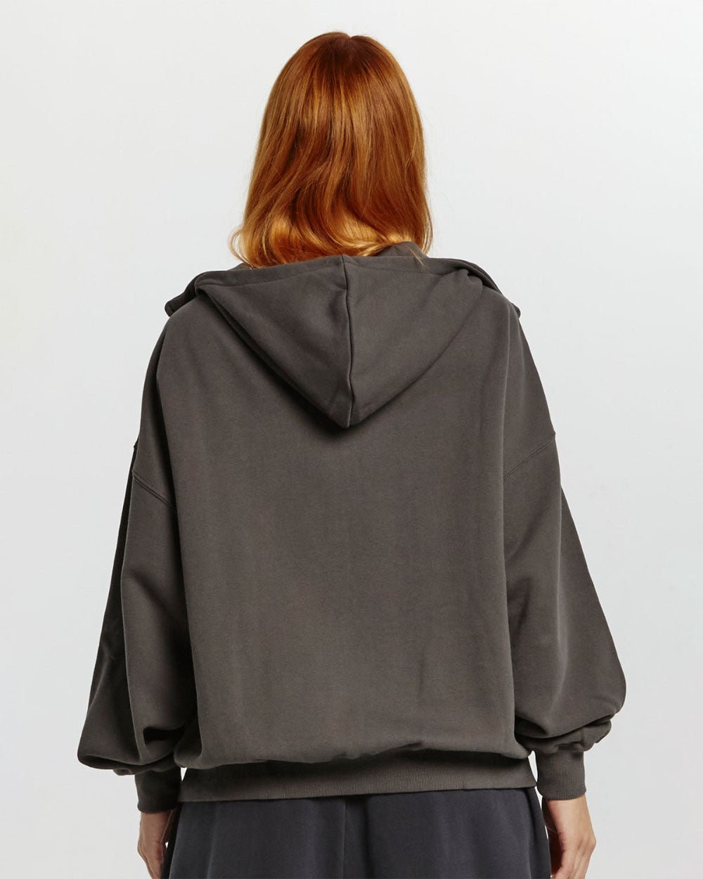 Sudadera con capucha, cremallera y corte cuadrado.