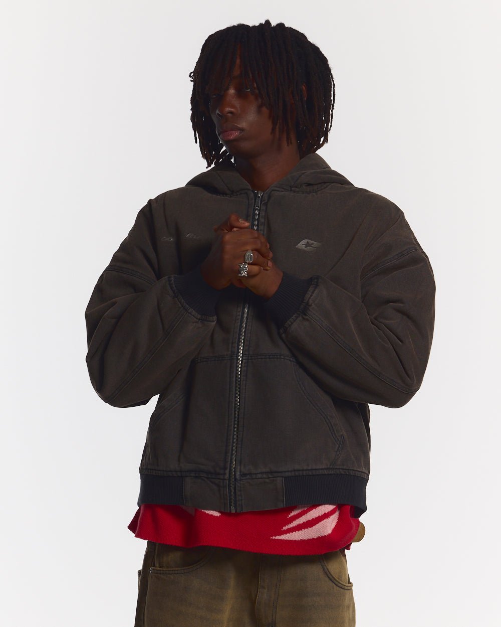 SUDADERA CON CAPUCHA ESTRELLAS ROJA Y NEGRA