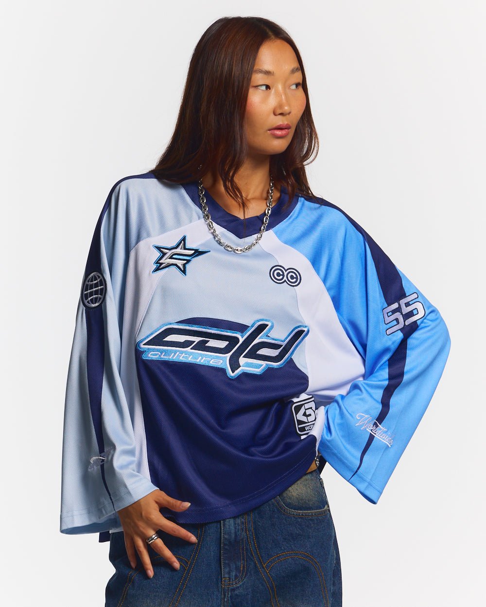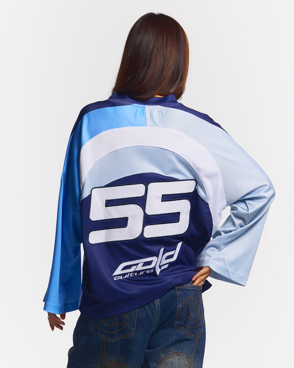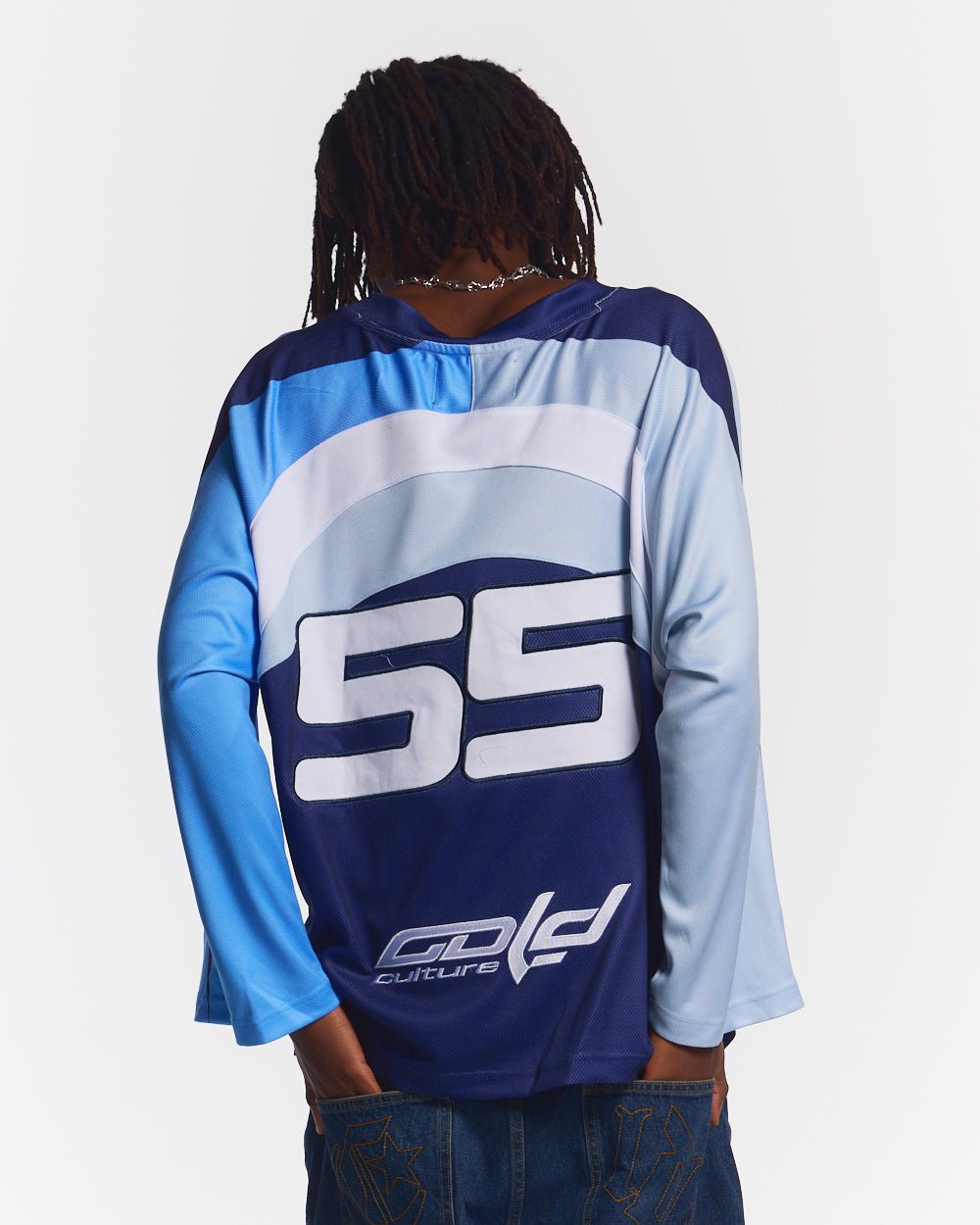 CAMISETA DE MANGA LARGA DE JUGADOR DE HOCKEY AZUL MARINO/AZUL BRILLANTE