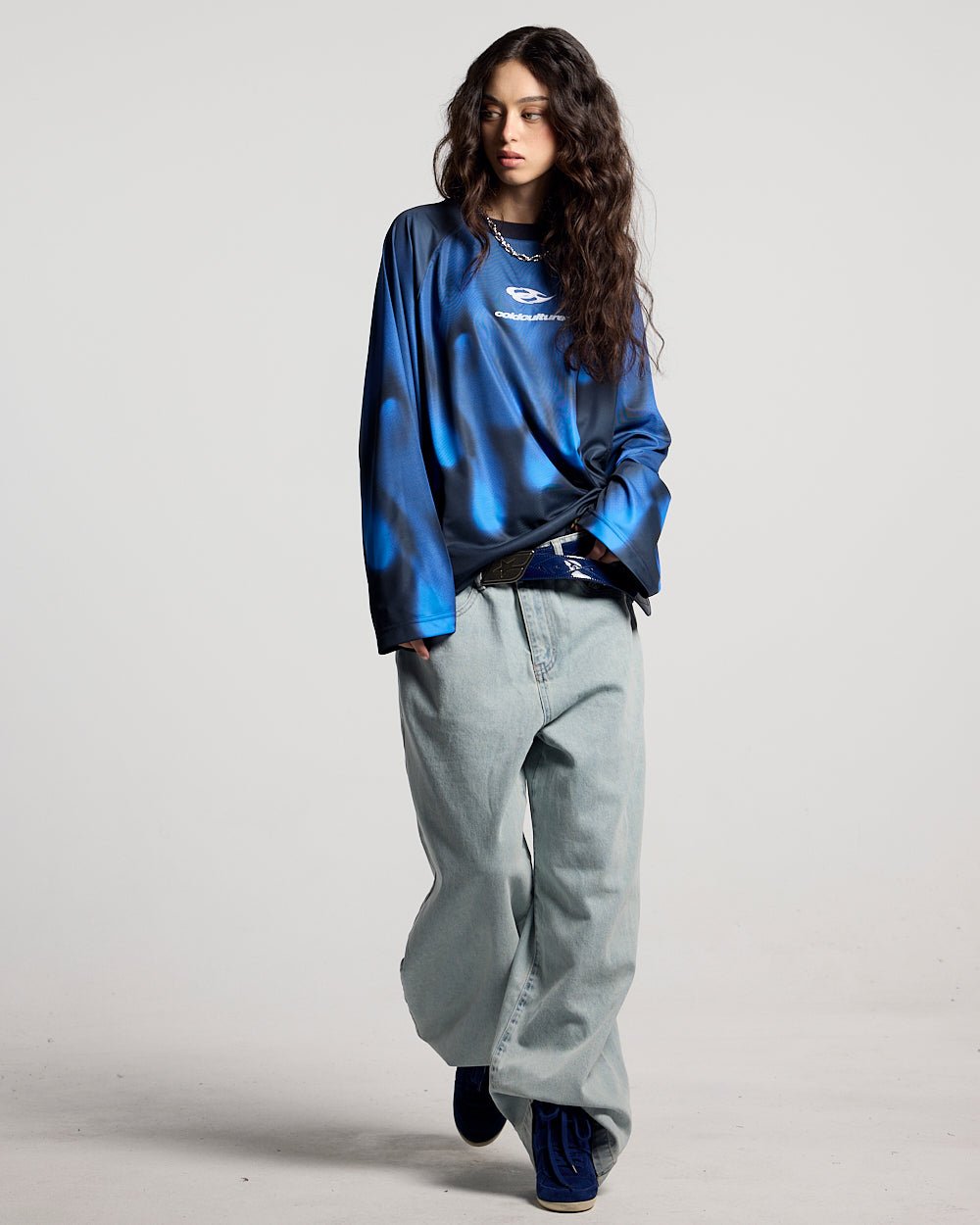 CAMISETA TRIBAL DE MANGA LARGA MARRÓN Y AZUL