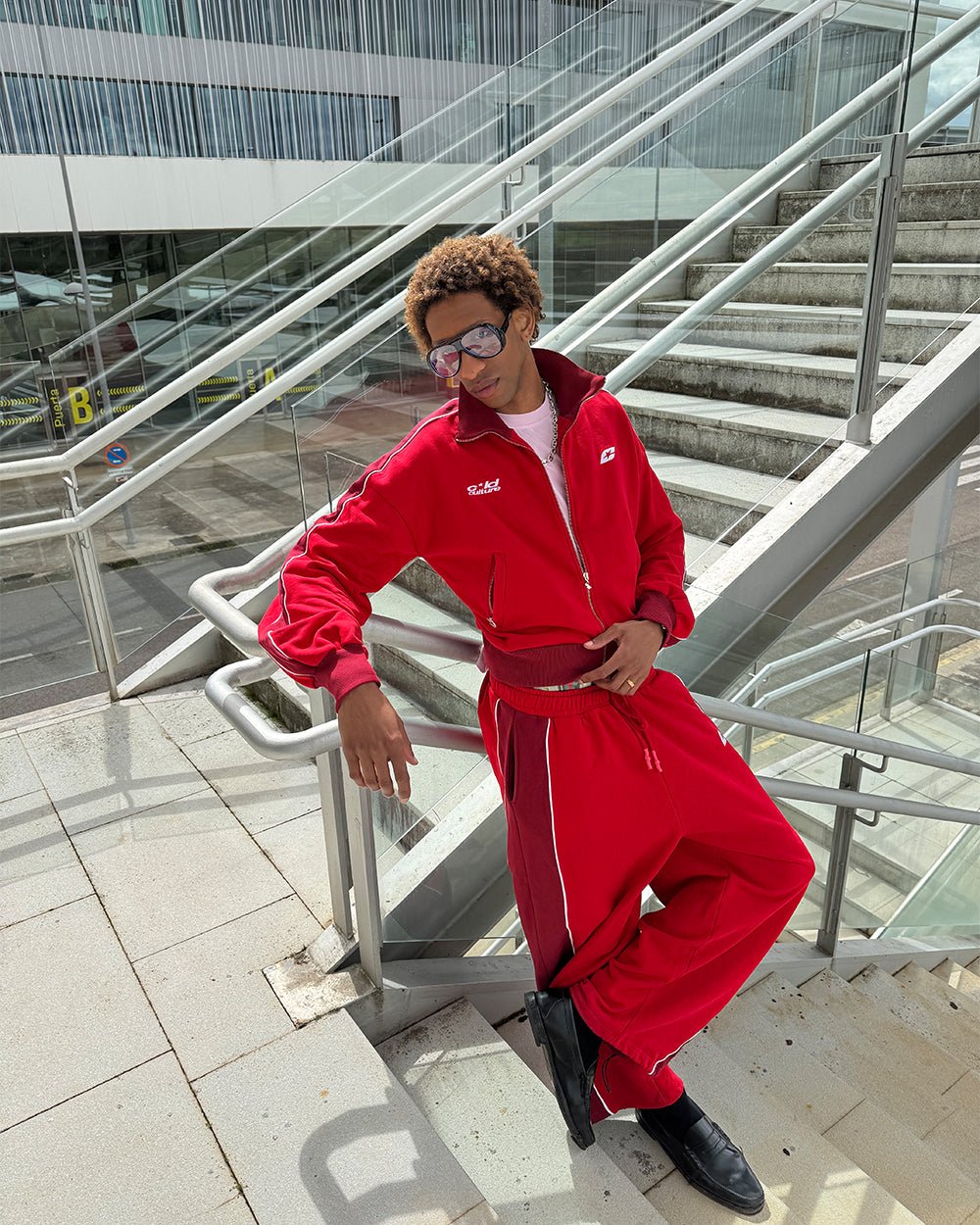 PANTALONES DEPORTIVOS TRIBALES GRIS Y BLANCO ROJO