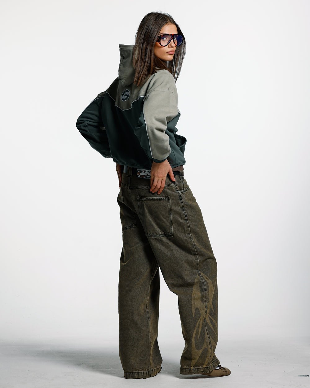 Sudadera con capucha, corte cuadrado, cremallera y capucha estilo buzo.