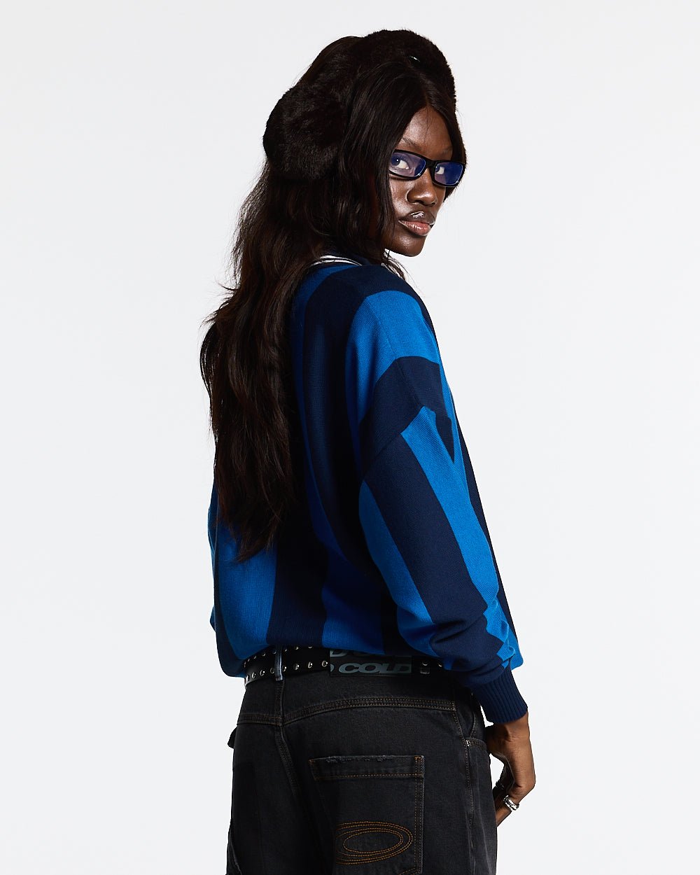 CAMISETA TRIBAL DE MANGA LARGA MARRÓN Y AZUL