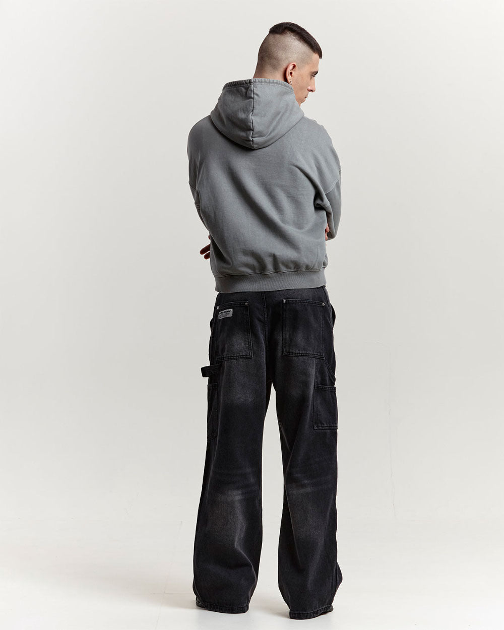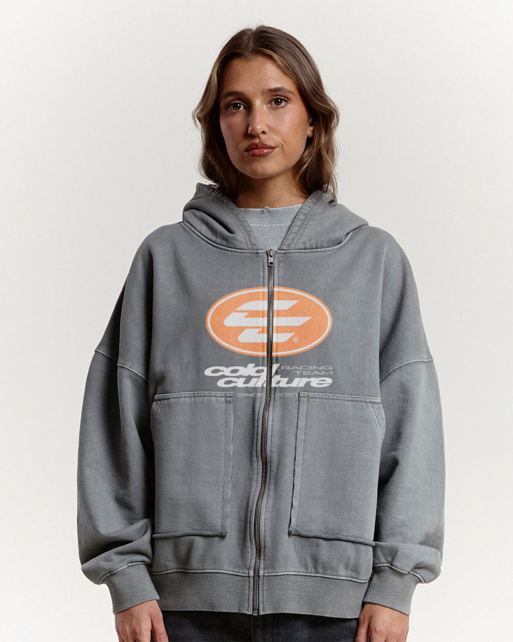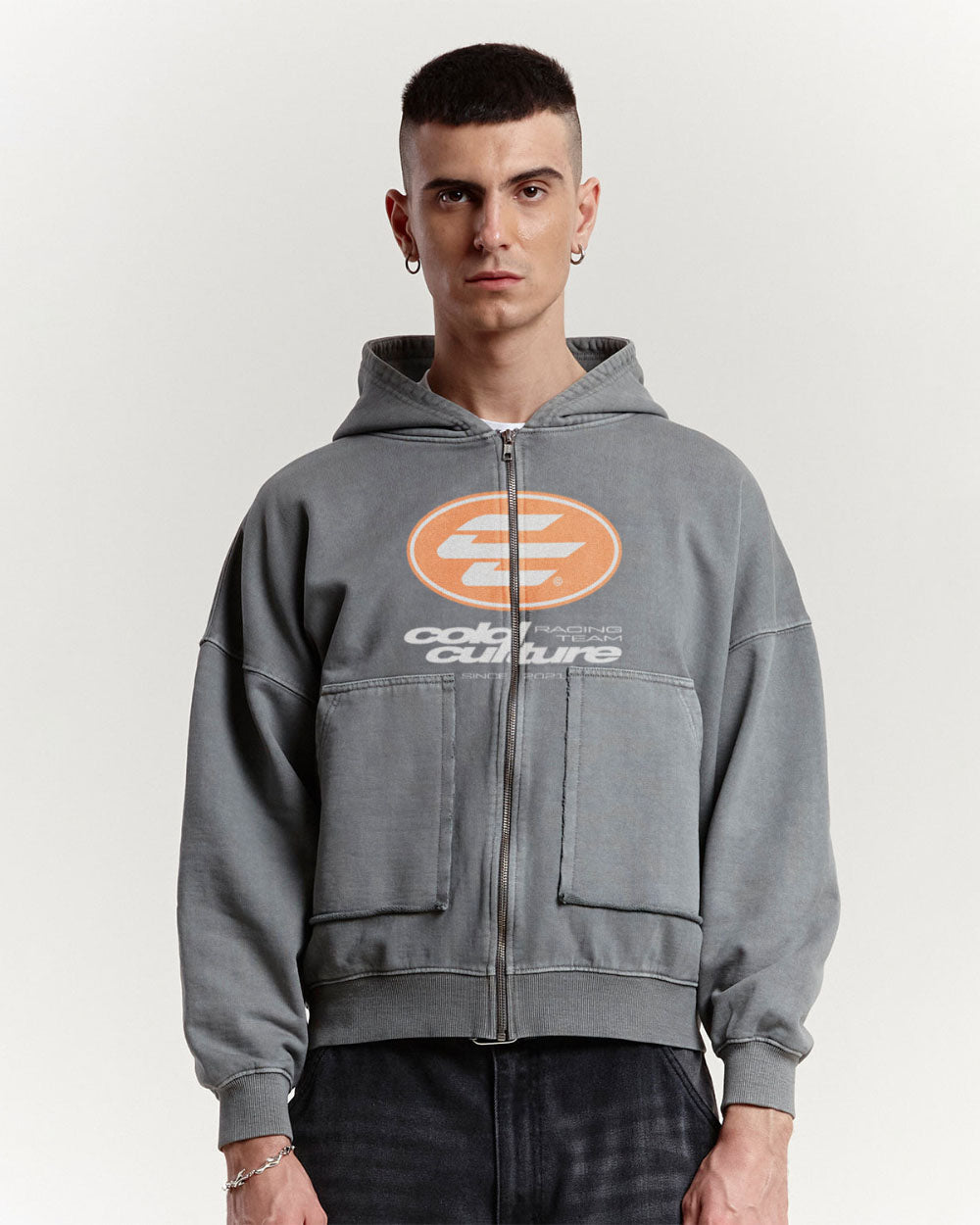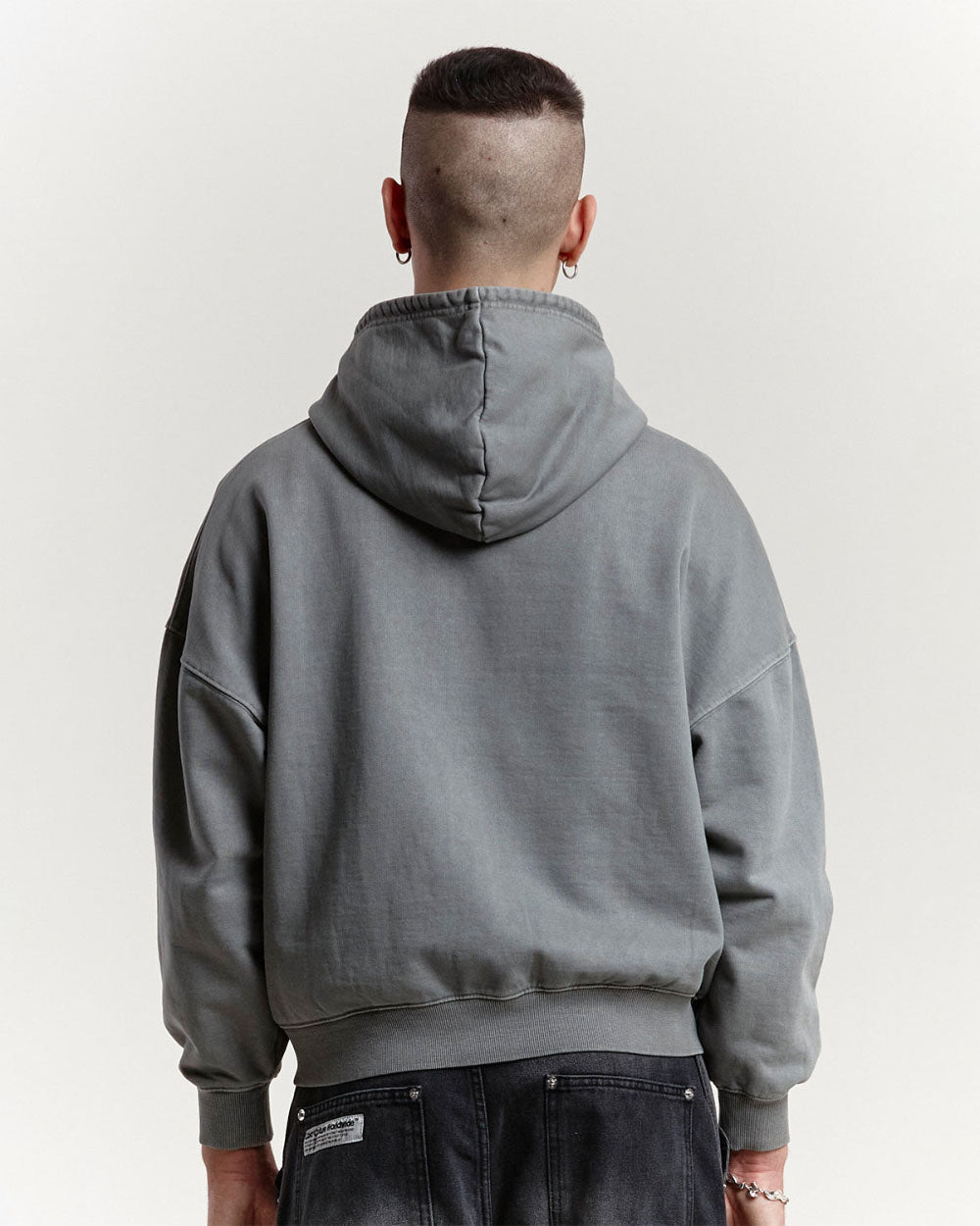 SUDADERA CON CAPUCHA Y CREMALLERA RÁPIDA + GRIS POLVO LAVADO