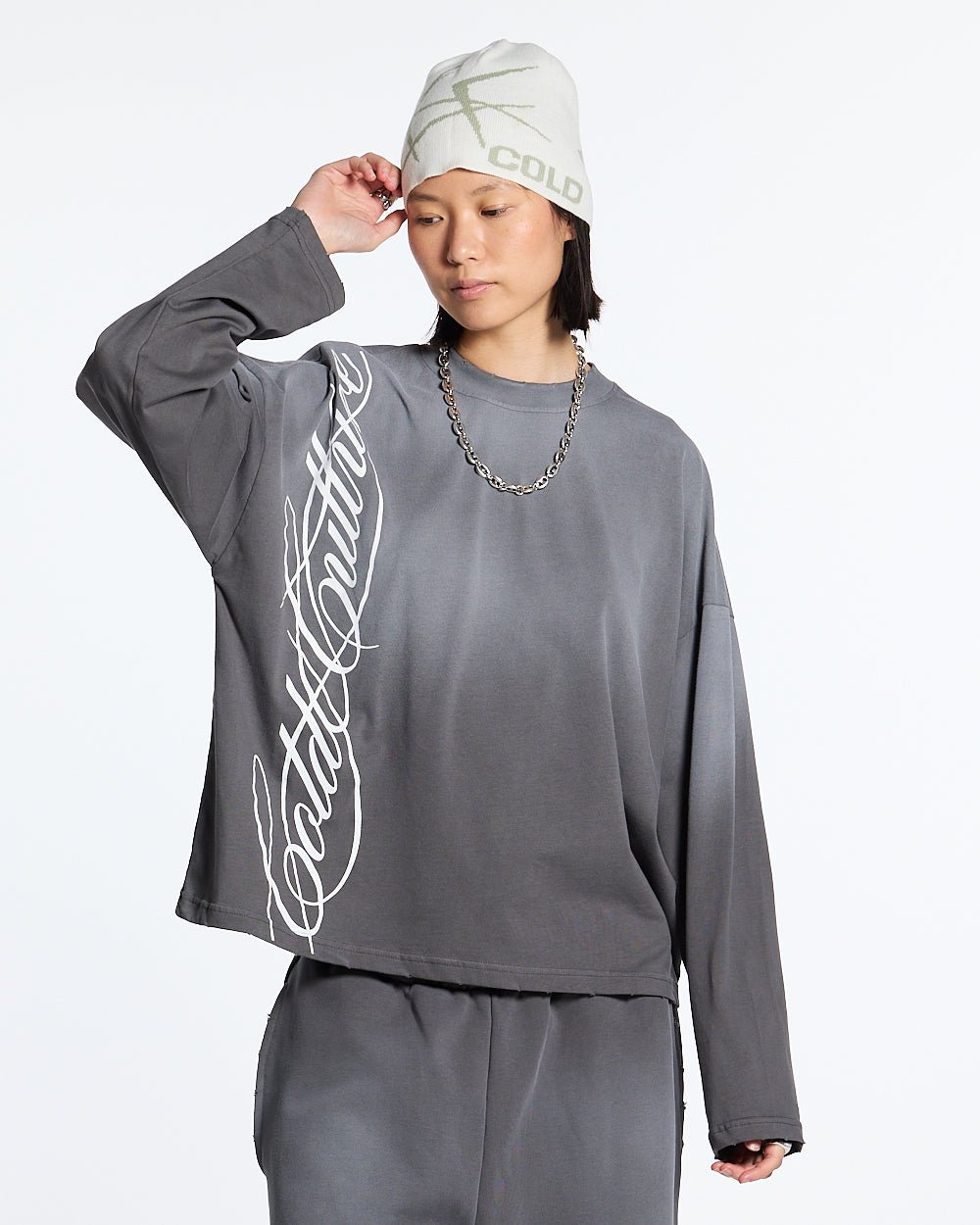 CAMISETA DE MANGA LARGA SCRIPT GRIS ANTRACITA